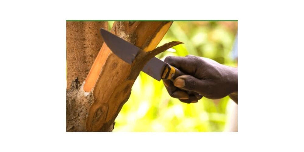 Cinnamon sticks (also called quills) are made by peeling the inner bark of young cinnamon branches. When dried, this bark curls naturally into the familiar stick shape used in cooking, medicine, and beverages. Harvest usually begins 2–3 years after planting, but full yield may take longer. (Gardenia)