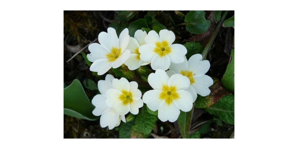 - Primula vulgaris – Common primrose with soft yellow flowers